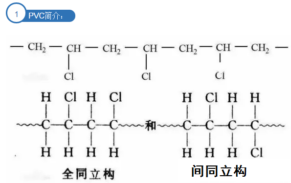 PVC为无定形结构的白色粉末,支化度较小,相对密度1.4左右,玻璃化温度77~90℃,170℃左右开始分解,对光和热的稳定性差,在100℃以上或经长时间阳光曝晒,就会分解而产生氯化氢,并进一步自动催化分解,引起变色,物理机械性能也迅速下降,在实际应用中必须加入稳定剂以提高对热和光的稳定性。