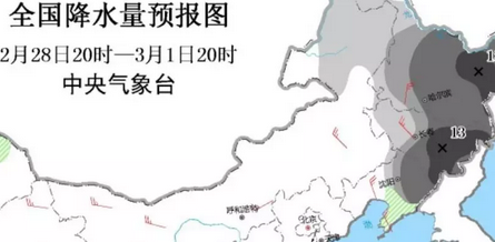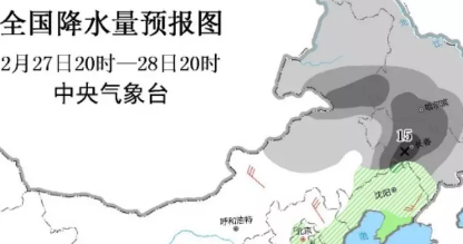 从昨晚开始,到明白天,内蒙古东北部、黑龙江西南部、吉林中部和辽宁北部等地的部分地区有大雪,其中,吉林中东部、黑龙江东北部局地有暴雪(10~15毫米);上述地区新增积雪深度4~7厘米,局地可达10厘米左右。