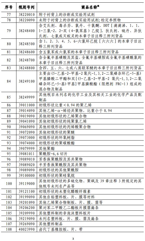 这份清单涉及聚碳酸酯、聚酯、聚酰胺等材料,其中聚酰胺出现多次。如果征税生效的话,在材料行业,对终端的影响还是不小的!