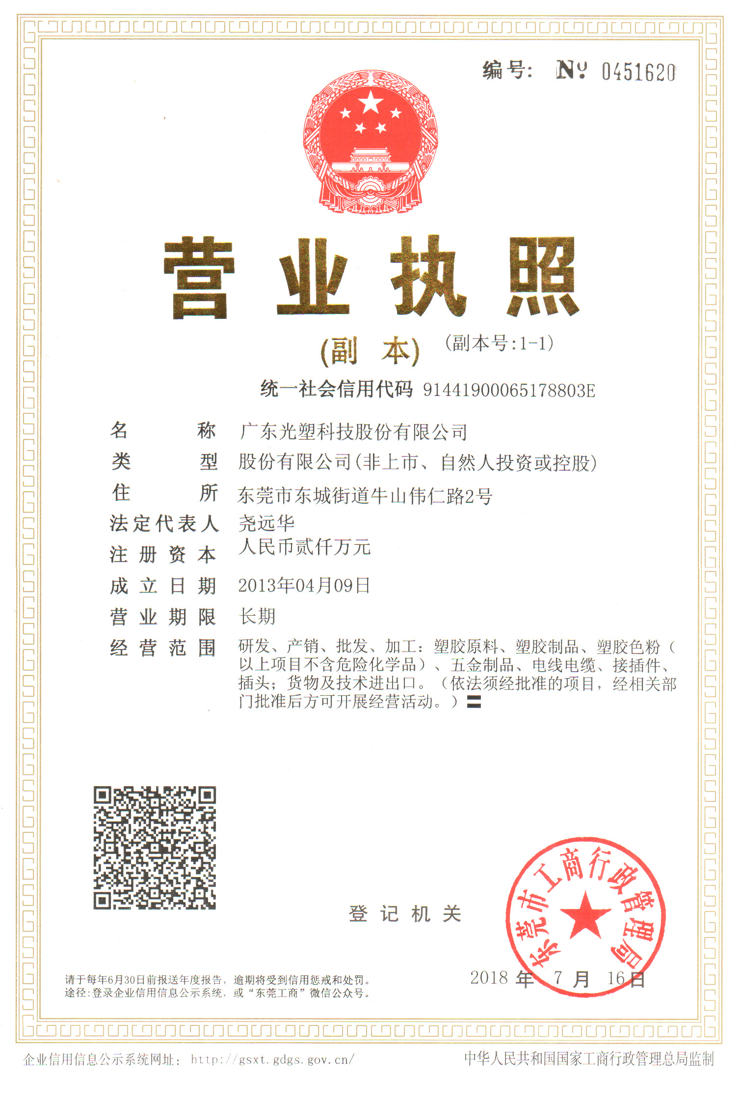 原广东光塑塑胶有限公司从即日起更名为【米兰.体育-米兰milan(中国)】原公司的商务往来,商标技术专利及其他相关业务事宜由新公司承接。光塑科技以更好、更高、更专业、更实惠的服务广大客户和供应商,为股东创造更丰厚的价值和财富。