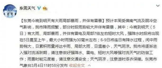 那么东莞受弱冷空气以及偏南气流影响未来一周全是雨雨雨+7级大风