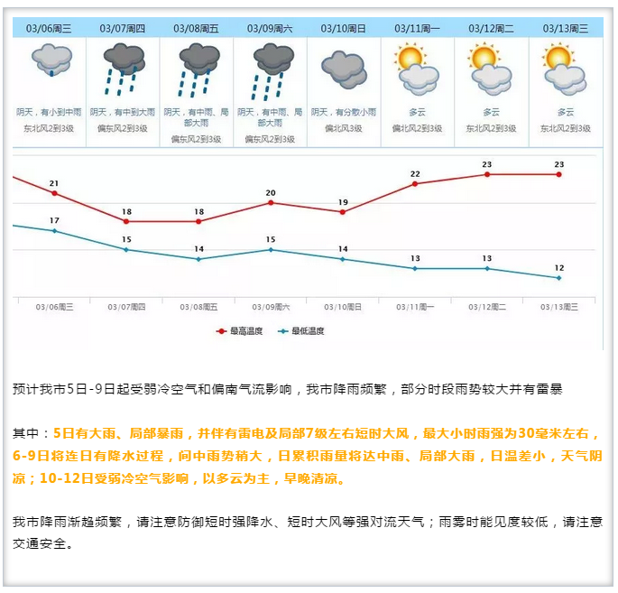 未来几天都会有大雨、局部暴雨并且日温差小,天气阴凉