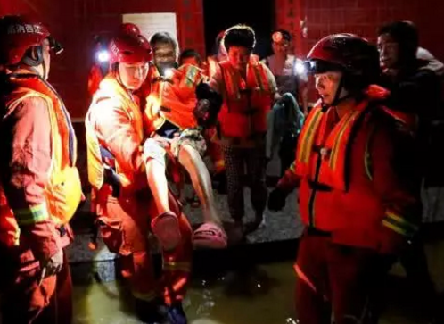 2019年7月9日,江西省峡江县水边镇沂溪村三名被洪水围困的村民,被当地消防队员成功救援出来。