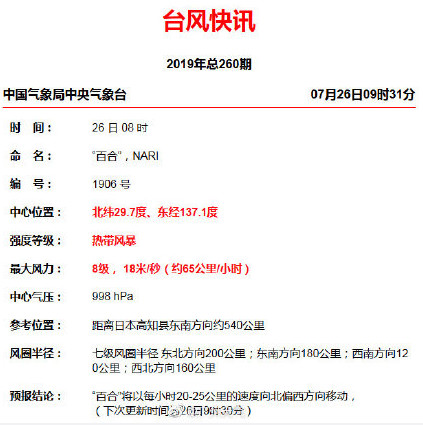 预计我市27日受副热带高压控制,多云为主,局部有短时阵雨或雷阵雨,天气高温炎热;