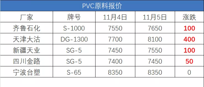 PVC:国内PVC现货市场开盘报价继续小涨,国内电石市场出货顺畅,烟台万华40万吨11月新开,德州实华20万吨计划11月新开,目前现货供应紧俏,然期货资金面波动等影响期货盘中走弱,午盘现货价格普遍回调,市场成交气氛观望居多,短期看市场供应弱紧局面延续,下游高价抵触增强,市场价格区间暂稳僵持为主, 华南电石五型主流价格参考在7450-7550元左右。(未含税)