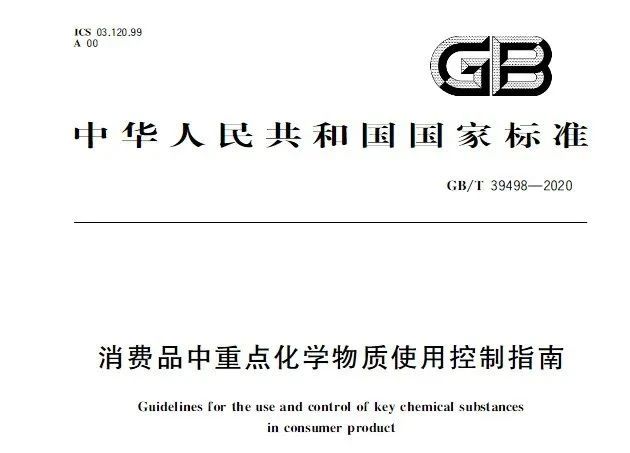 2021年6月1月,“中国版REACH限制物质”——GB/T 39498-2020《消费品中重点化学物质使用控制指南》将正式实施。